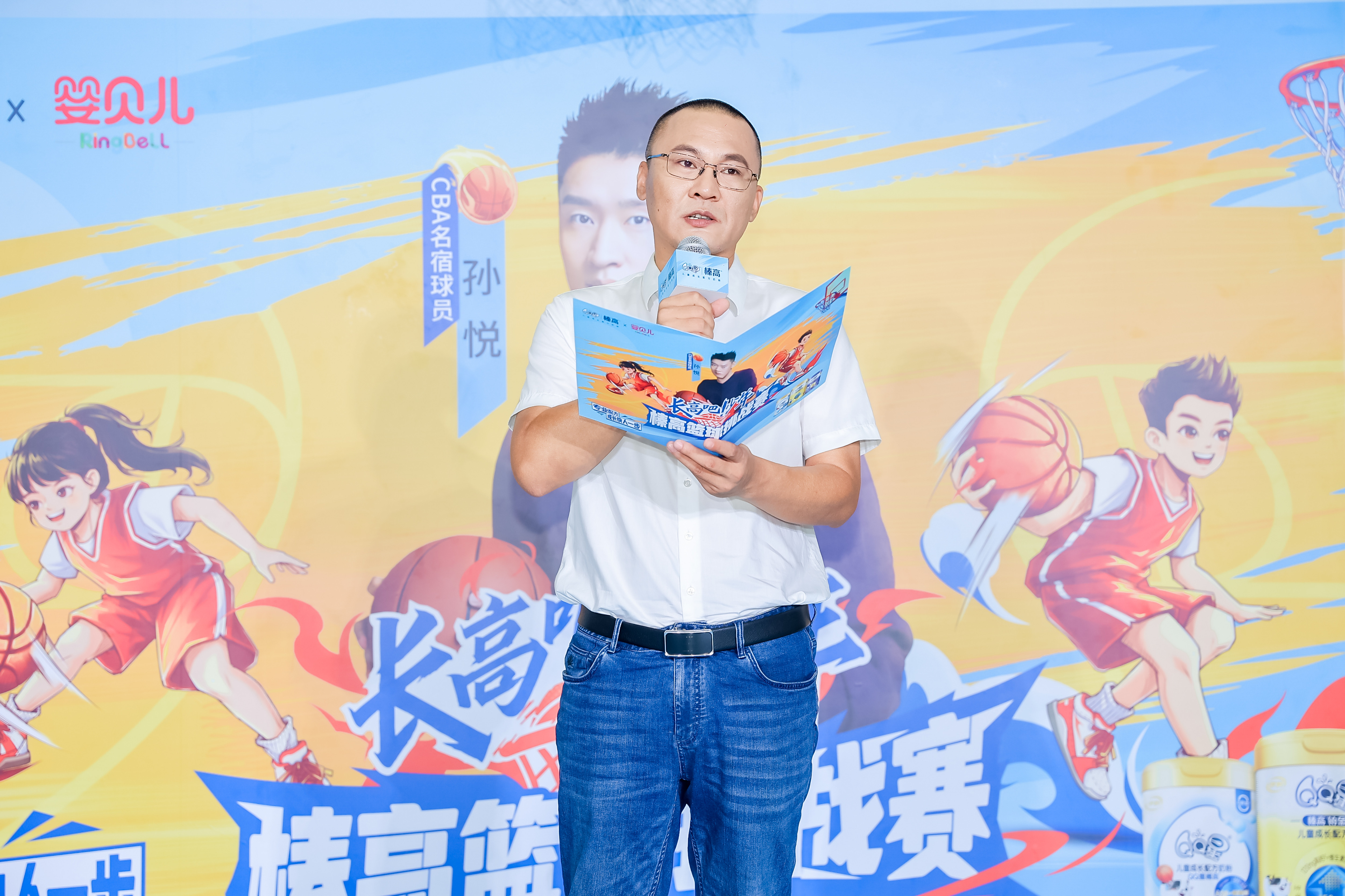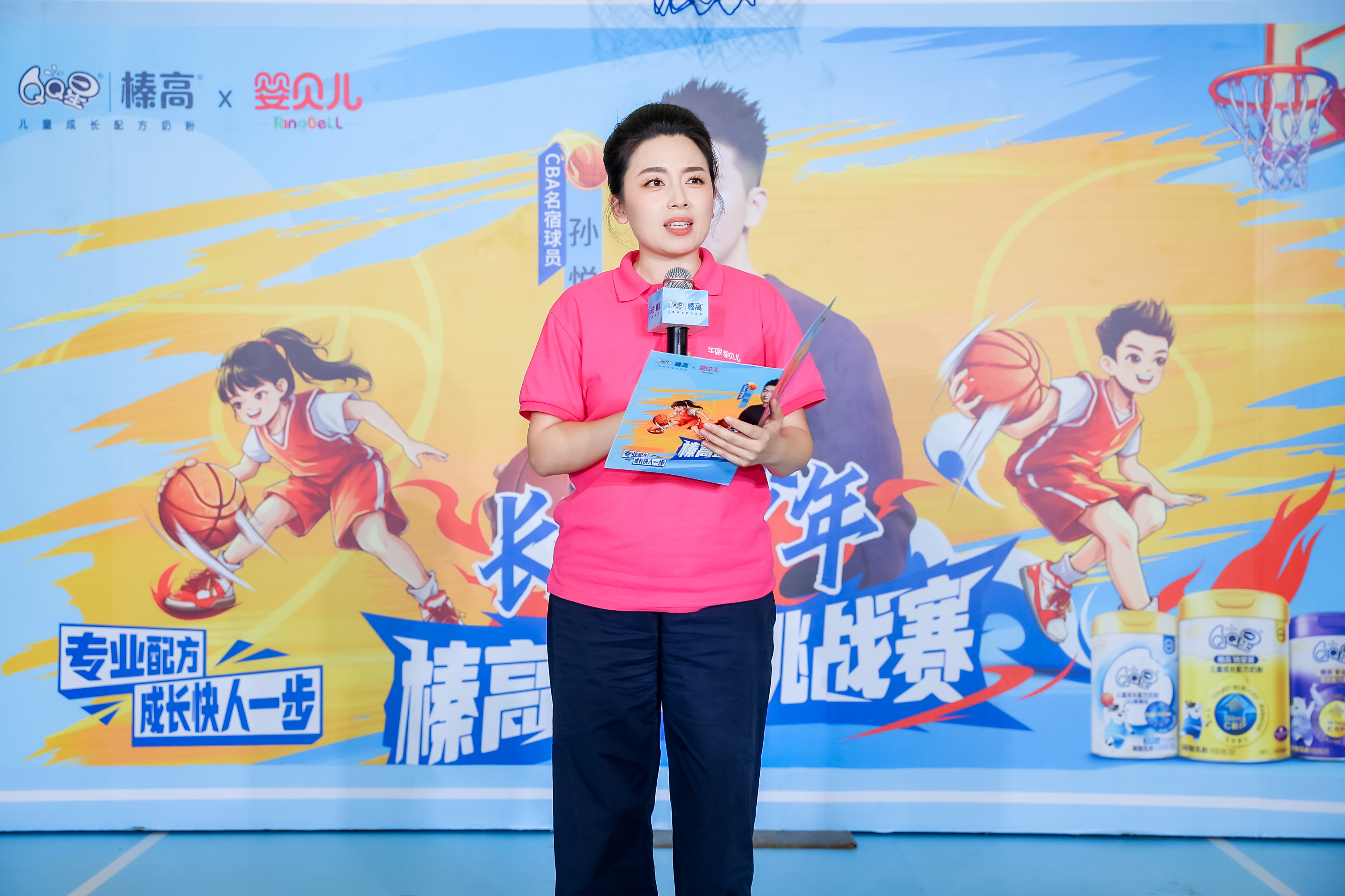 伊利奶粉山东营销总部总经理荀成也发表了热情洋溢的讲话,欢迎到场的家长和小朋友,介绍了本次活动是一场玩学一体的狂欢,不仅有孙悦手把手教孩子们打球,还有多种赛制给孩子们展示自我的舞台。